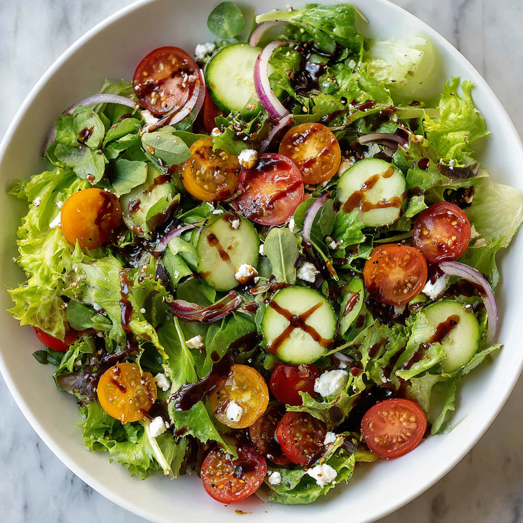 This Best Simple Side Salad with Easy Balsamic Vinaigrette is crisp, tangy, and versatile—perfect for any occasion. Try it, share your feedback in the comments, and subscribe for more quick, flavorful recipes!