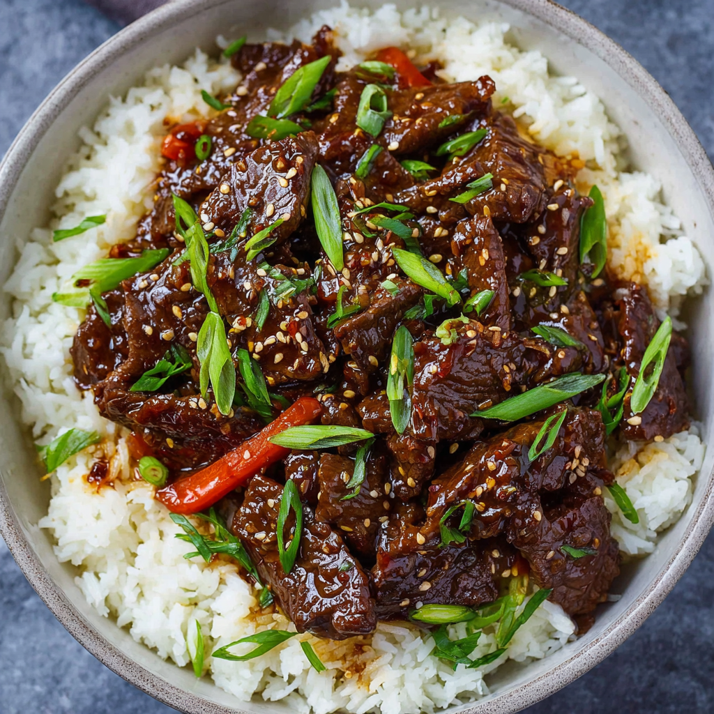 Return the beef to the pan along with the green onions. Toss for 1–2 minutes until the sauce has thickened and is clinging to every piece of meat. Serve immediately over steamed rice or broccoli.
