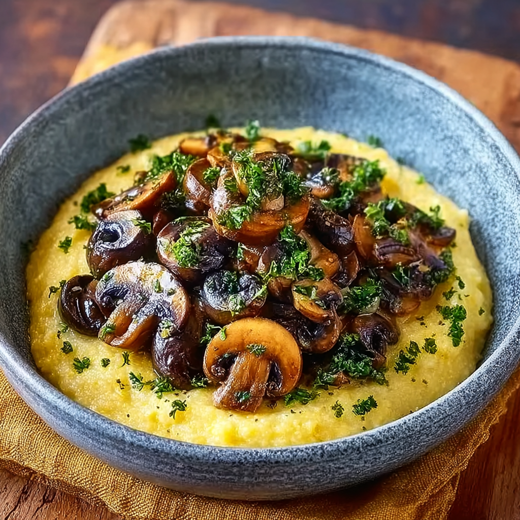 If you’re looking for a vegetarian comfort food recipe, a creamy polenta dinner idea, or a Mediterranean mushroom sauté, this dish delivers restaurant-quality flavor with minimal effort. Earthy mushrooms caramelized in garlic and olive oil, finished with fresh parsley, served over velvety, buttery polenta—it’s rich, comforting, and surprisingly nutritious.
