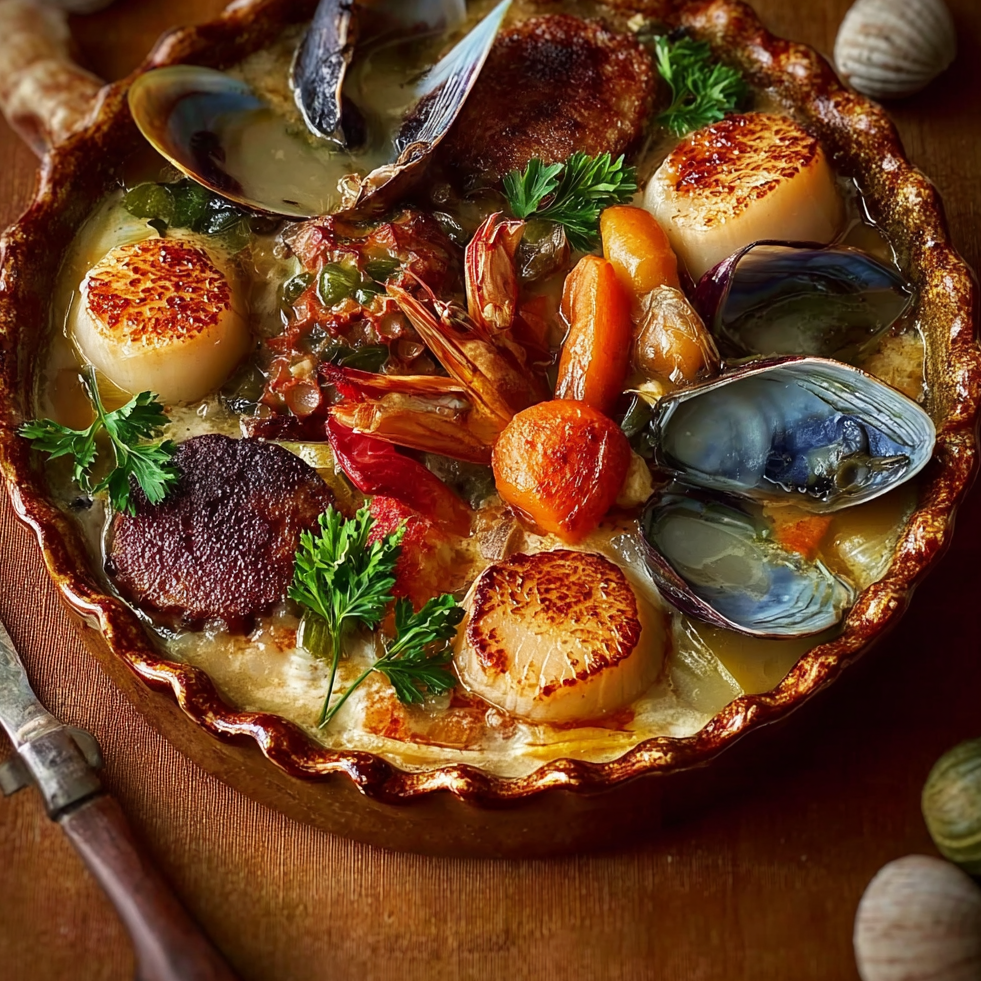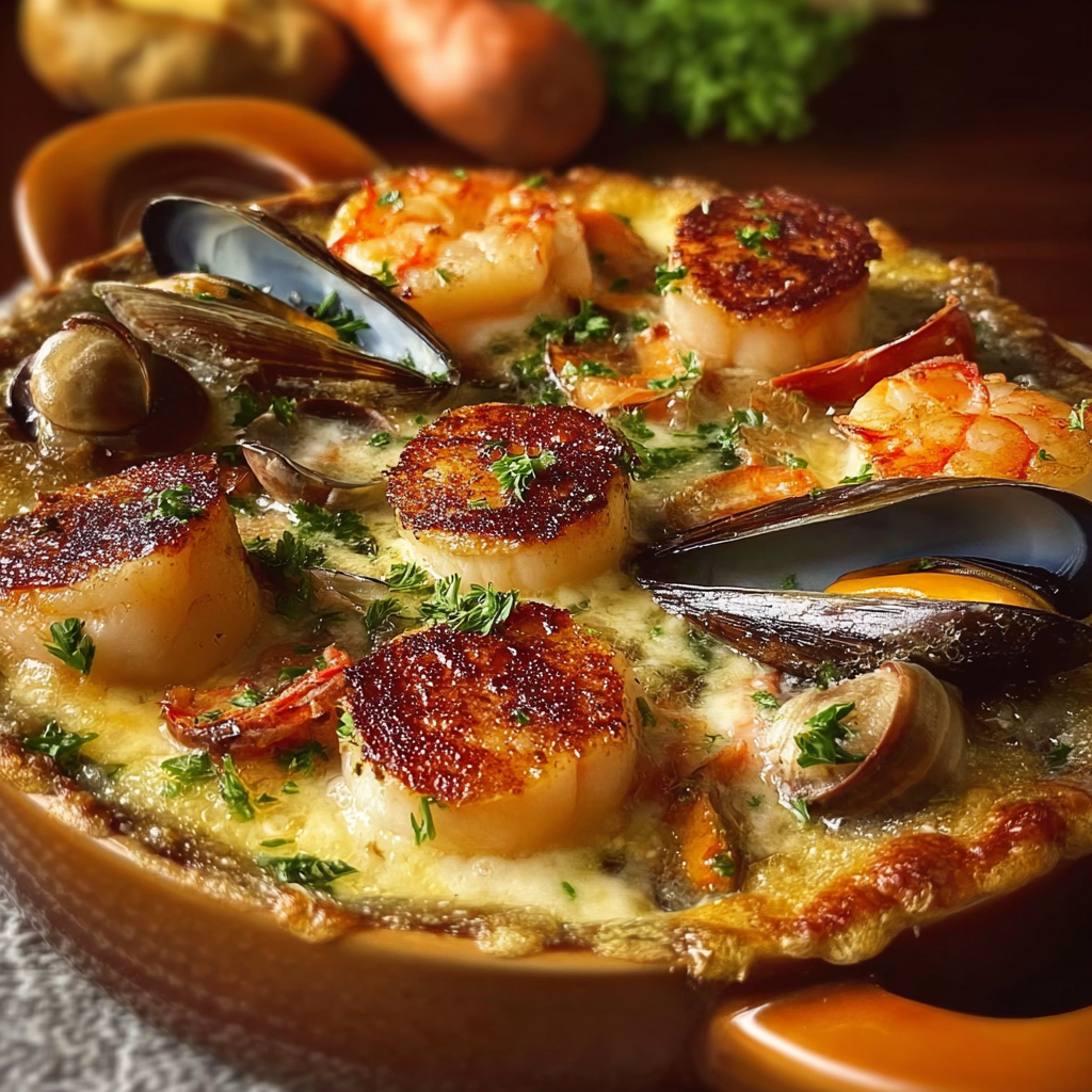 Gourmet Seafood Casserole is a masterclass in moisture control. By pre-searing the shellfish and using a wine-deglazed Mornay sauce, you create a dish that is rich, stable, and highlights the delicate natural flavors of the sea.