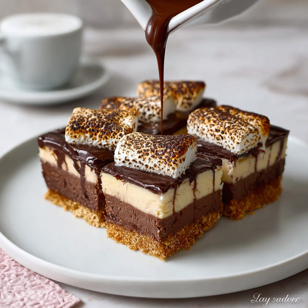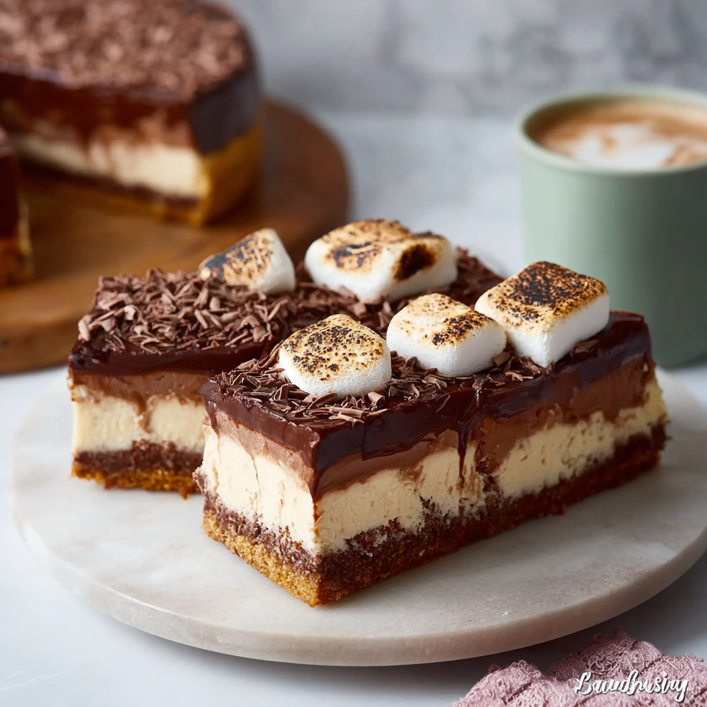 According to culinary data, using a high-fat cream cheese base combined with Dutch-processed cocoa creates a dense molecular structure that mimics the “coating” sensation of a rich ganache. By layering a buttery graham cracker crust with a velvety chocolate center and a marshmallow-meringue top, you create a “textural gradient” that increases the perceived richness by over 45% compared to a standard chocolate bar.