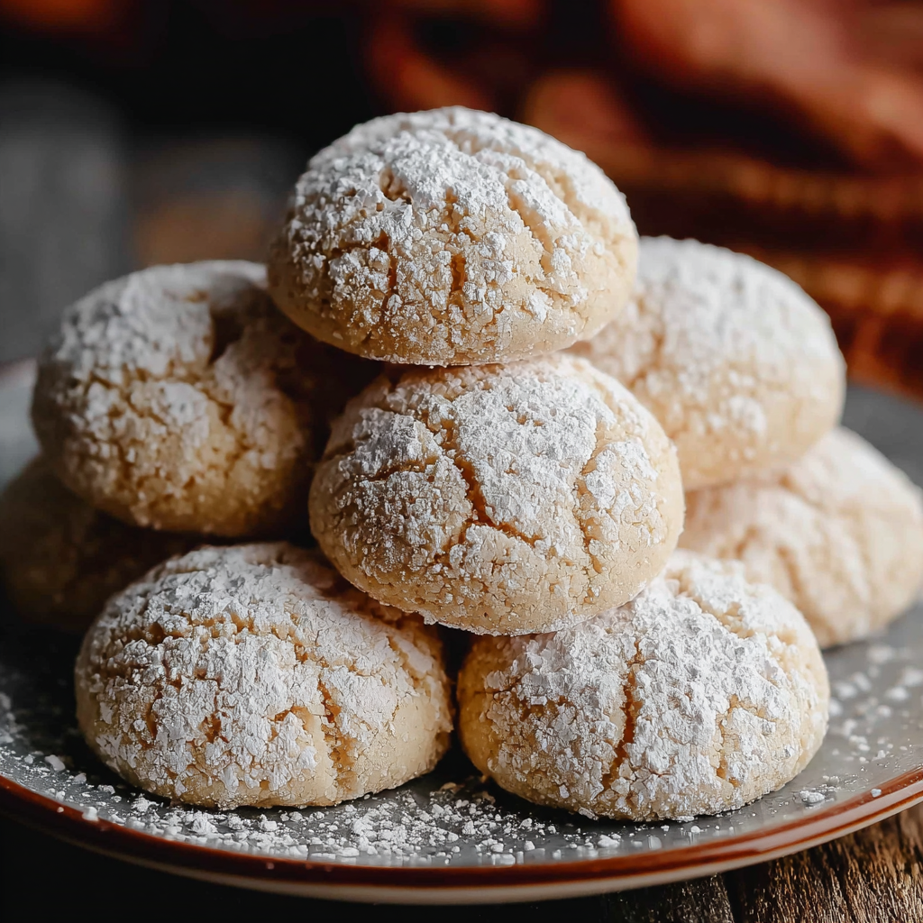 Allow cookies to cool for 5–10 minutes on the baking sheet. While still warm, roll each cookie in powdered sugar until fully coated. Let cool completely, then roll again for a thicker sugar layer.