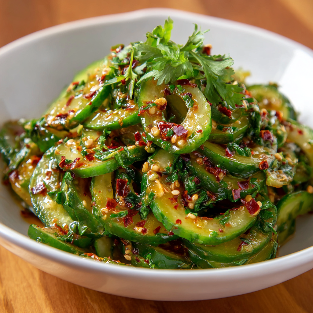 This Spicy Cucumber Salad is a quick, vibrant, and flavorful dish perfect for any meal. Crisp cucumbers, zesty dressing, and a hint of heat make it irresistible. Try this recipe, leave your feedback in the comments, and subscribe for more exciting culinary ideas!