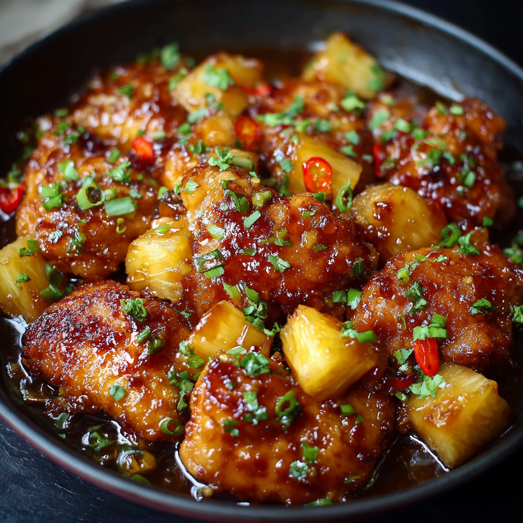 Return the chicken to the pan and add the pineapple chunks. Toss for 2–3 minutes to heat through. The heat “sets” the glaze onto the chicken, while the pineapple releases a final burst of fresh acidity to balance the sugar.