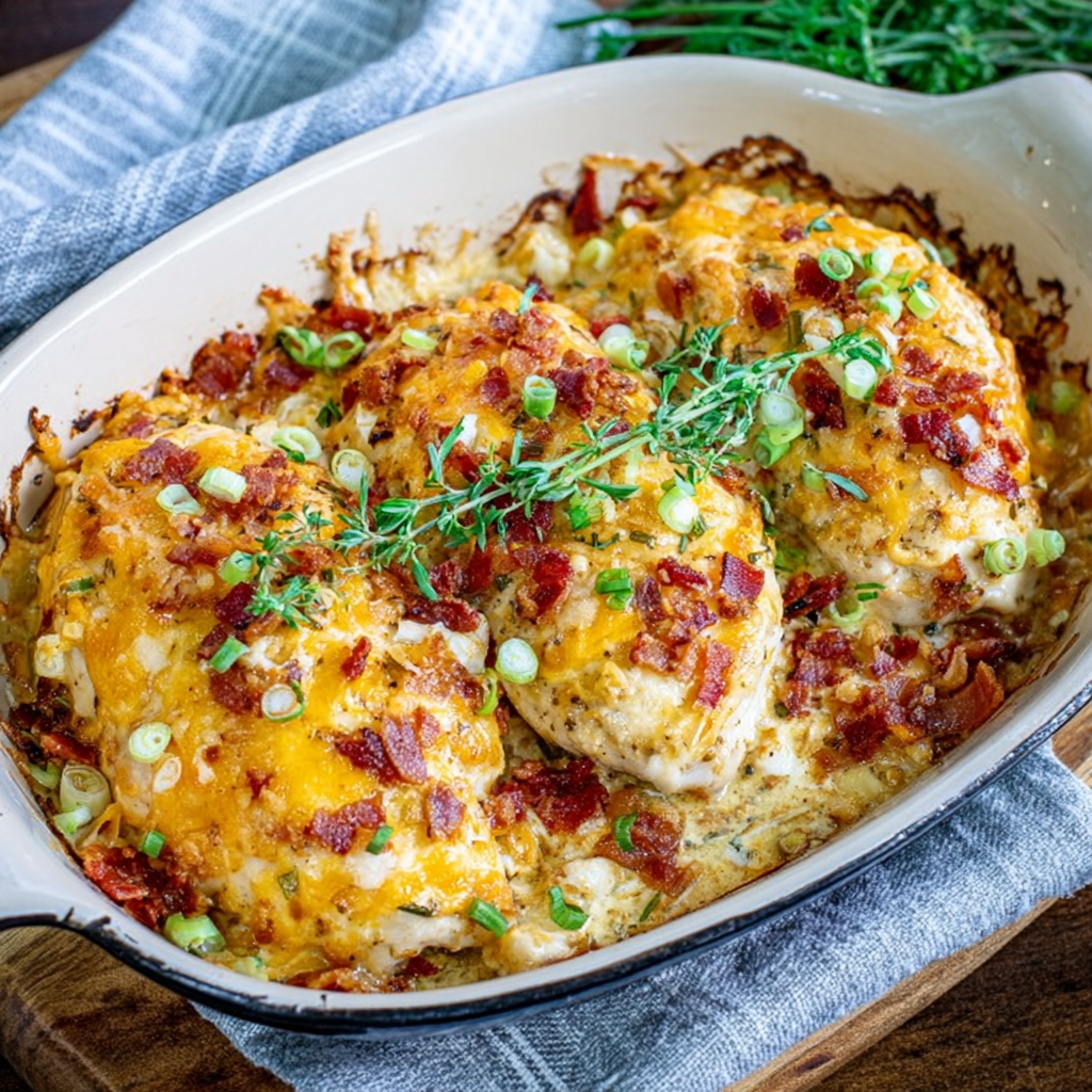 In the hierarchy of high-protein casseroles, the Million Dollar Chicken Bake represents a sophisticated study in Moisture Retention and Surface Maillard Browning. The technical challenge of baking chicken breasts is the “Dry-Out Point”: lean white meat begins to expel its intracellular water at 63°C, often leading to a “stringy” texture. By utilizing a “Million Dollar” topping—a dense emulsion of cream cheese, mayonnaise, and sour cream—you create a Thermal Insulator.