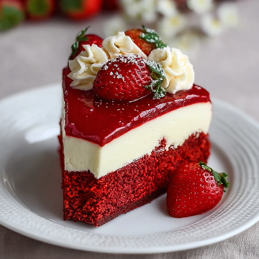 The Grand Finale: Artisanal Red Velvet Strawberry Cheesecake